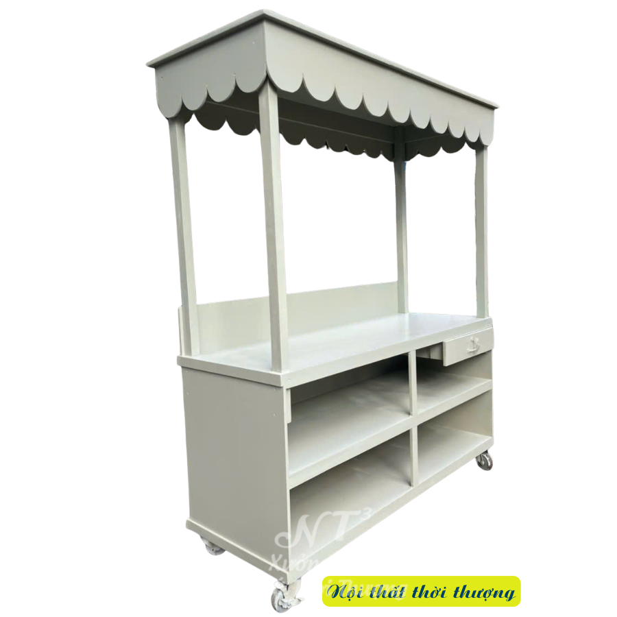 Xe Đẩy Bán Trà Sữa Chất Liệu Gỗ Thông Giá Rẻ